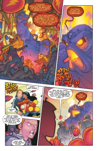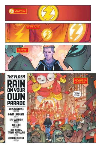 Here's DC's official synopsis for "Rain on My Parade": "It’s the Flash Parade and everyone’s so excited...except for Barry Allen. This is his least favorite day of the year. Can a superhero showdown with the villainous Tar Pit show Barry the best side of the parade or will the day be ruined?"