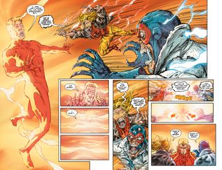 There's a lot of moments where you get to see some characters meet each other for the first time. There are different scenes, here and there, not getting too deep because of spoilers, but for example, you can see from the first issue a lot too, Bart is clearly in the story and he plays a really big part and the Tornado Twins are in the story too. And that's his dad and aunt - we get to see them see each other really for the first time.