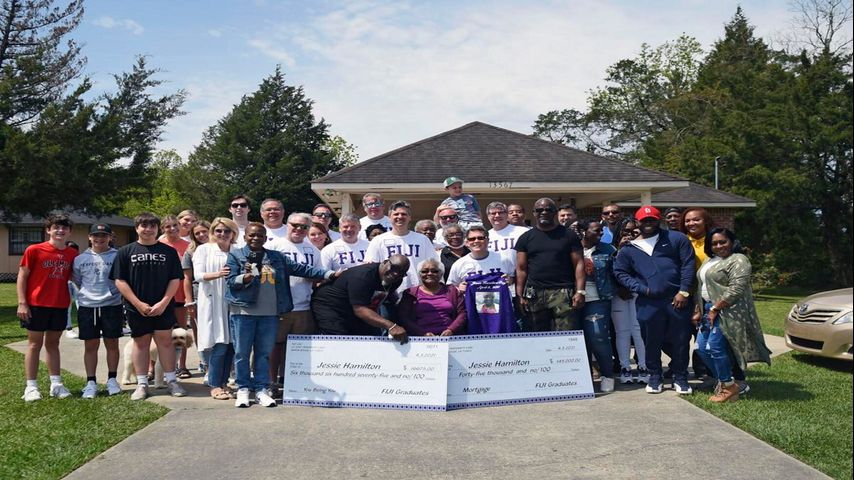 BATON ROUGE - A group of LSU fraternity brothers teamed up to pay off the mortgage of a former cook who had a special impact on their lives, for her 74th birthday on Saturday.